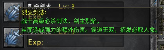 烈火剑法为高阶主动技能,具备必杀判定机制。释放时不仅造成高额单段伤害,更会在目标周围生成持续燃烧区域,对范围内敌人施加多段灼烧效果。该技能冷却适中、范围可控,是战士衔接连招、压制群怪及应对BOSS战的关键输出手段。