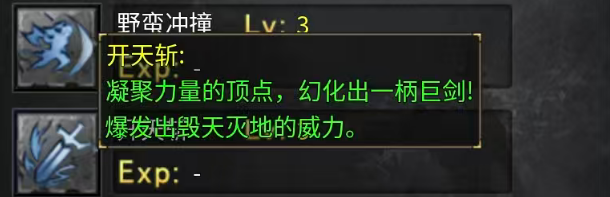 开天斩为蓄力型爆发技能,需短暂引导后挥出巨型剑影,对正前方扇形区域造成巨额物理伤害。其视觉辨识度高、伤害阈值稳定,是战士应对高血量精英怪或PVP关键反制时的核心终结技。