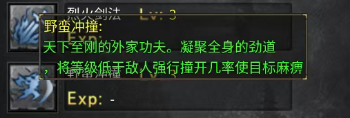 野蛮冲撞是战士少有的功能性位移兼控制技。释放时消耗劲道值,对等级低于自身的敌人触发强制击退,并附带概率麻痹效果。该技能在副本走位、打断敌方施法、快速脱离包围圈等场景中具有不可替代的战略价值。