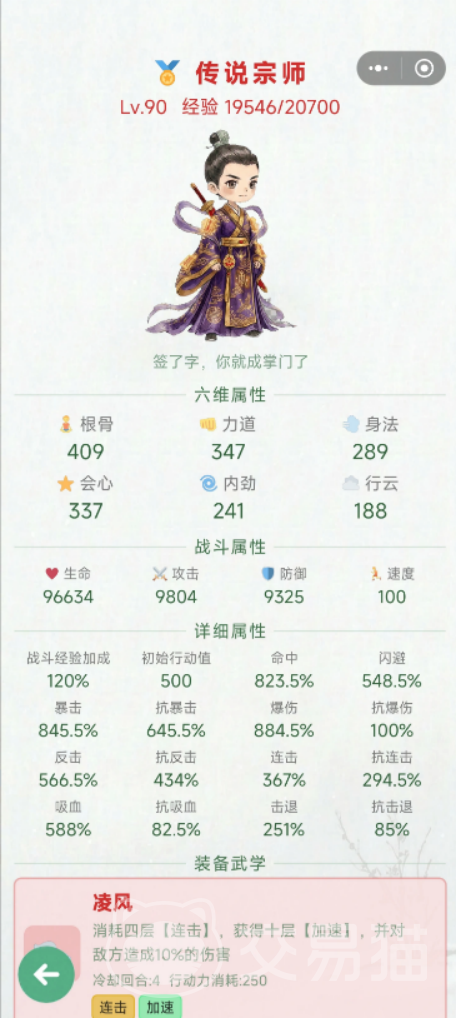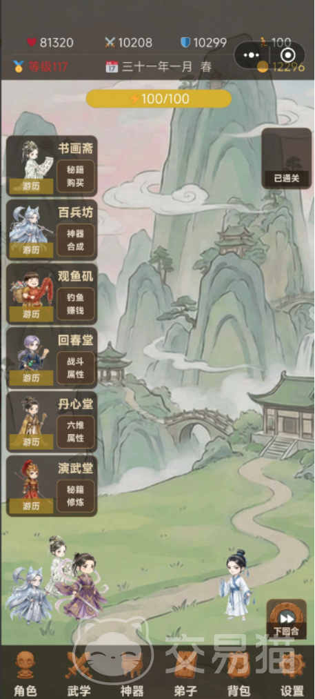 游戏核心由四大动态系统构成:武学系统承载全部招式资源,神器系统提供属性加成与特殊被动,弟子系统赋予协同作战能力(如助战、援护、分担伤害),属性系统则决定角色基础成长维度(根骨、悟性、身法、气劲)。四者并非孤立运行,而是形成深度耦合的成长网络——例如某件“寒螭断玉簪”神器可使冰系武学附带减速,若搭配高身法弟子“柳七娘”与“凌波微步”武学,则可构建高速位移+持续控场的战术循环;而“九转玄功”属性加成则会同步强化所有内功类武学的真气恢复效率。