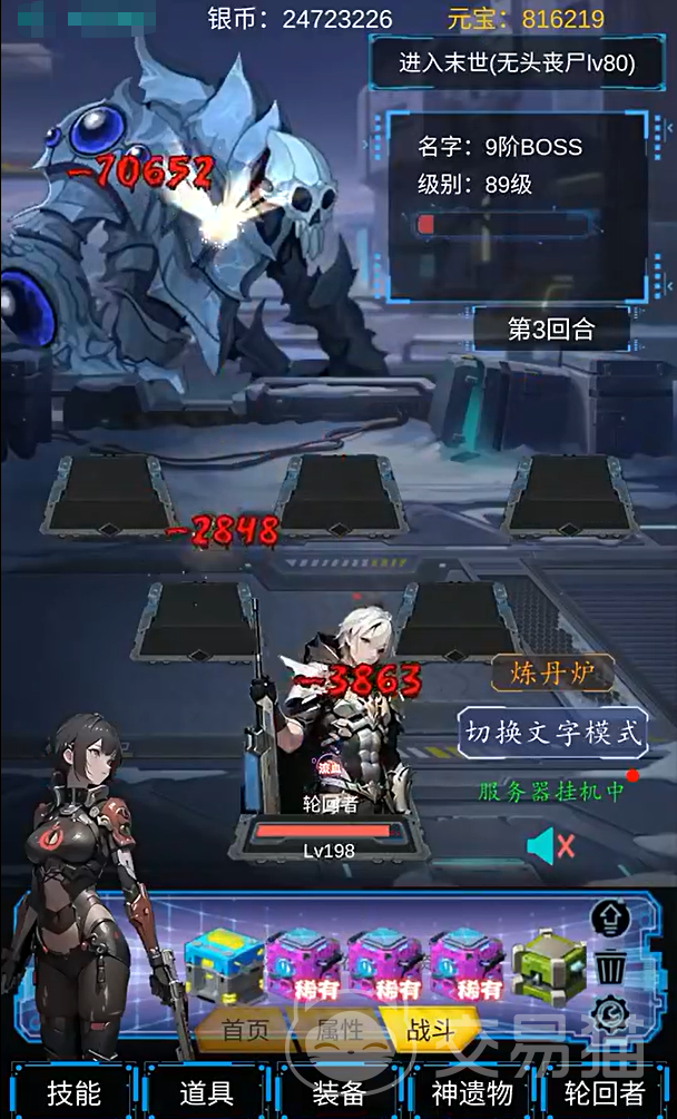 游戏启动后,直接进入“末世”场景开启自动战斗。点击左上角Lv.1地图图标,选择常规战斗模式即可挂机。需特别注意:必须在技能栏配置至少一个主动技能,否则角色将无法触发有效输出,严重影响经验获取速率。本作采用离线同步机制,挂机期间的经验收益与在线状态完全一致,无需频繁上线干预。