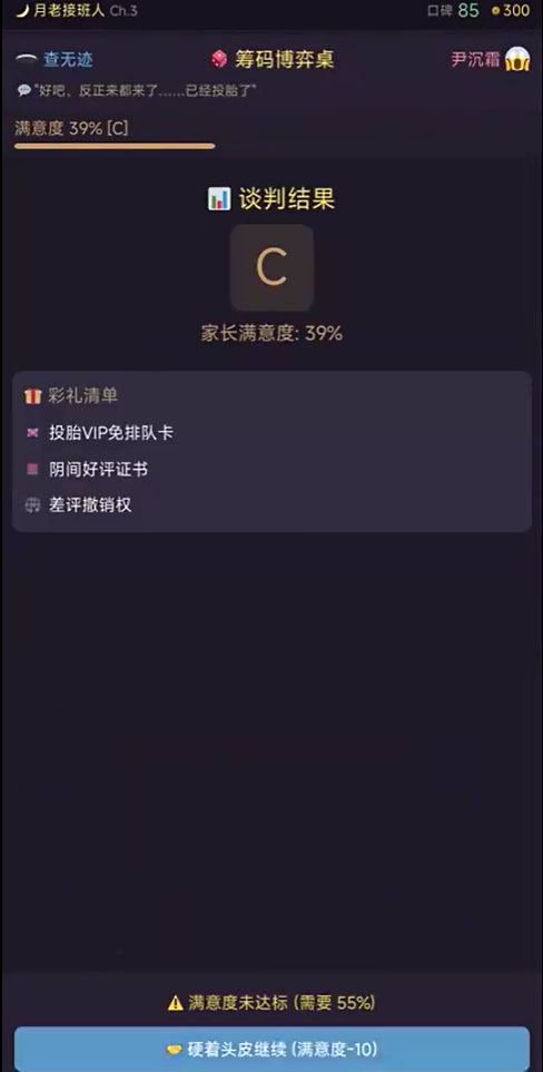 四大核心数值构成成长体系:相性分(匹配基础)、口碑分(解锁新角色与剧情)、人情值(兑换道具及特殊事件)、家长满意度(彩礼环节专属评级)。四者存在动态关联,偏科式培养将导致后期内容受限,需保持均衡演进。