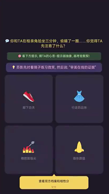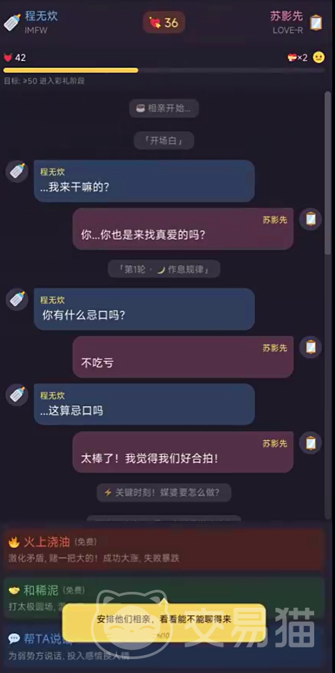 开局需系统梳理角色档案。每位待配对象均具备显性标签(如“爱健身”“常熬夜”)与隐性特质(如“健身卡仅使用两次”“聊天全程依赖表情包”)。这些细节直接影响系统生成的相性分——该数值满分为100,是匹配可行性的基础参考。但需注意:高相性分并非成功保障,部分低分组合在特定干预下反而能激活隐藏剧情线,考验玩家对人物内核的理解能力。