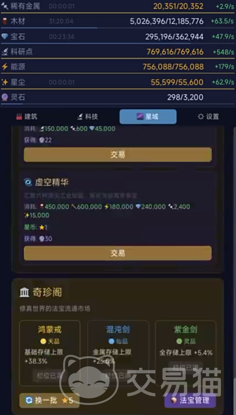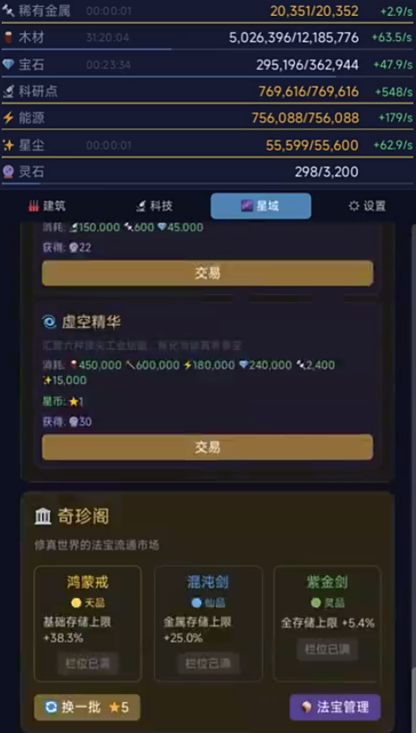 玩家初始将获得一座基础采矿站,通过离线挂机持续产出资源,用于空间站扩建、科技研发、法宝炼制等关键成长环节。随着战力提升,不同层级的星域将逐步开放,涵盖修真星域、天魔星域等多个差异化区域,每个星域均配置独立资源生态、环境规则及专属世界Boss,击败后可获取限定材料。