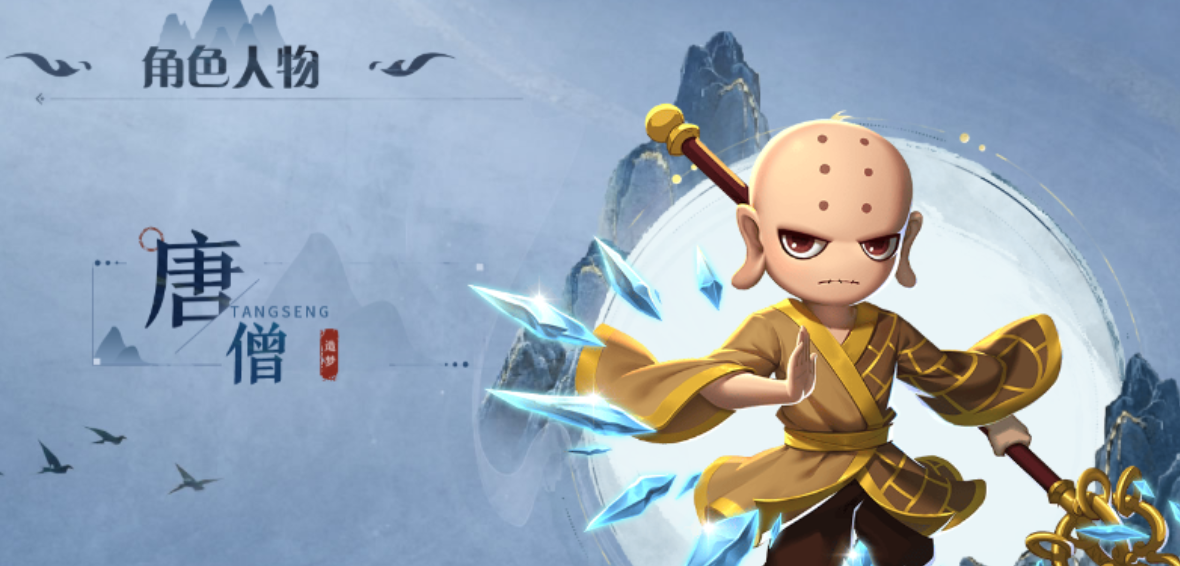 次推角色:唐僧。虽常被归类为辅助,实则具备均衡的双模作战能力。主动技能“水魔爆”拥有稳定范围伤害与较高基础倍率,适用于小怪群与精英单位;“灵光普照”提供全队护盾与法术攻击加成,持续时间达8秒,冷却仅25秒,在连续作战中覆盖率优异。被动“慈航普渡”每2秒为全体队友恢复生命值并提升法术攻击力,数值随等级线性成长,在无专职治疗配置下仍可保障队伍续航。操作简单、释放时机宽容,是新手过渡期最可靠的阵容支点。