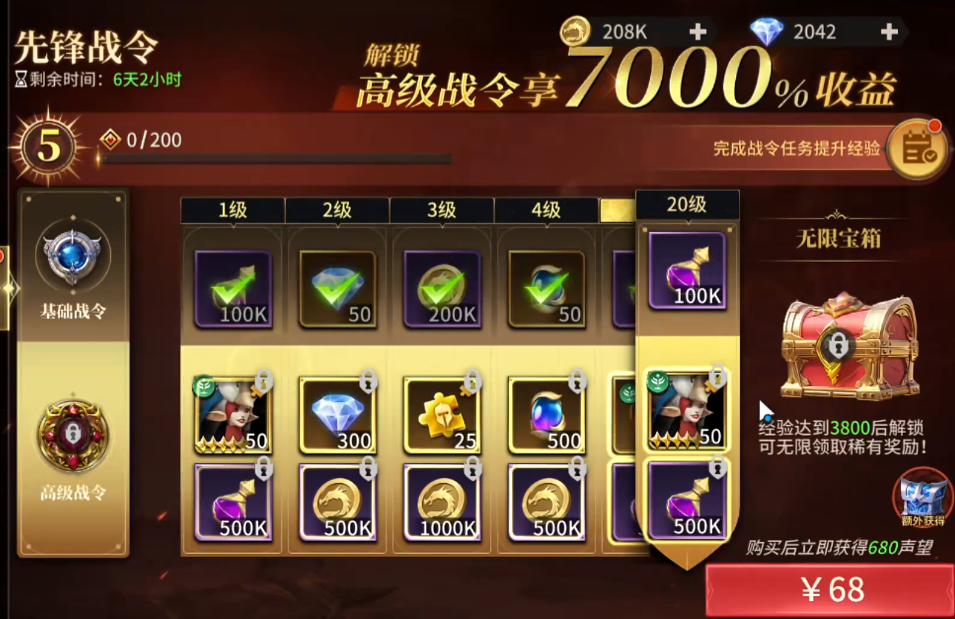 在各类战令中,“高级先锋战令”综合性价比突出。该战令不仅使每次等级提升所获奖励翻倍,更内置大量5星角色碎片,有效缩短高阶角色养成周期,助力玩家迅速构建高强度主力阵容。