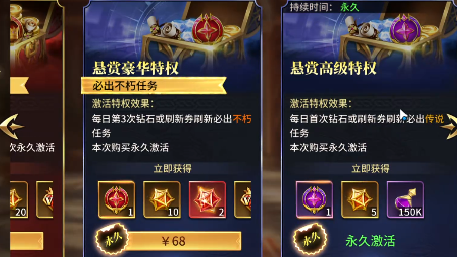 除基础战令外,游戏还设有特权类付费项目。对于中重度付费玩家,推荐直接入手“豪华特权”档位。该档位覆盖全部高级特权与前置豪华特权权益,且为永久生效,长期使用成本更低、功能性更完整。