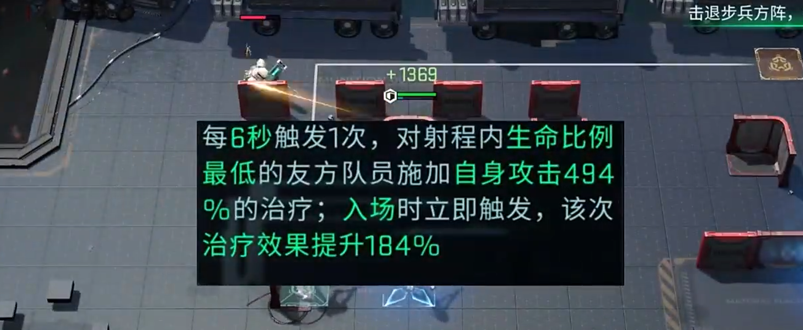 卡莉莎的终极技能“尊享护理”并非单纯群体治疗。该技能具备三层递进效果:首次释放时提供相当于攻击力184%的瞬发治疗;随后8秒内持续恢复生命;在战术专精满级后,每6秒自动对当前血量最低的友方单位施放一次治疗,单次治疗量达攻击力494%。这一设计使其在战局中既能应对突发减员,又能维持长期续航,尤其适配高频率受击环境。