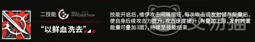 一技能「自呼号生发」为自动触发型技能,专注提升攻速。配合模组Y,综合攻速加成可达约100点,理论攻击间隔压缩至约1.5秒,稳定产出1个储存能量。适用于低操作压力场景,挂机即可维持高效储能节奏,兼顾泛用性与操作友好度。
