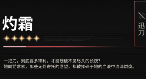 今天为大家带来《鸣潮》中五星迅刀“灼霜”的深度解析。作为当前版本冷凝属性体系的核心武器之一,灼霜凭借其高度适配的机制设计,持续受到高配玩家的关注。外观上,该武器以极寒质感为基调,刀身通体泛出冷冽银光,线条锐利、轮廓凌厉,整体视觉风格突出“霜刃”意象。