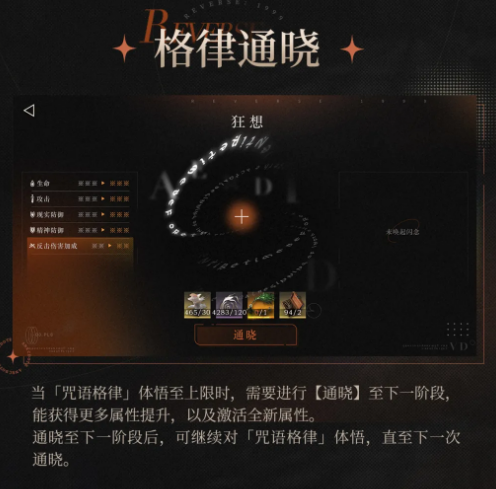 《重返未来1999》于10月31日10:00正式实装全新角色成长系统——“狂想”。该系统并非简单叠加数值,而是围绕角色内在潜能构建的一套进阶机制,通过“咒语格律”开发、体悟与通晓,实现属性强化与机制跃迁的双重提升。
