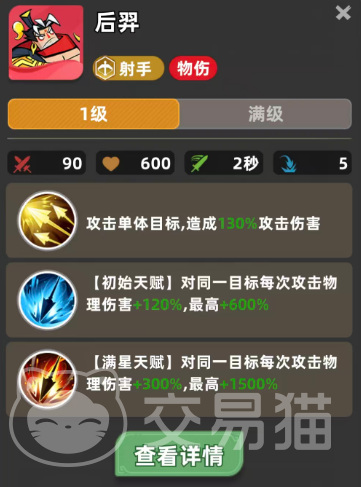 第二位是后羿。该角色定位为射手流派绝对核心输出,在黄金V段位后即可免费获取,零氪路径清晰可靠。其被动技能具备高效叠加特性,前期快速成型后,中后期推图与PVP对战中均能维持稳定持续输出。当满星天赋激活时,对同一目标的最高伤害倍率可达1500%,这一数值为当前所有射手角色中的峰值表现。操作手感流畅,技能衔接自然,是零氪玩家组建速攻射手体系时不可替代的主C人选。