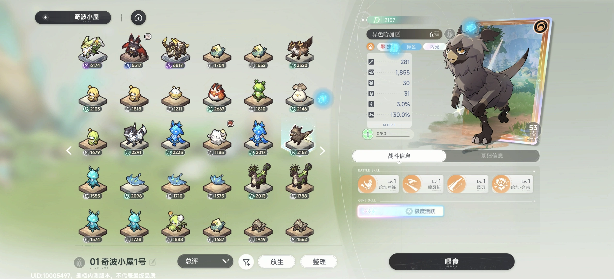 除钓鱼外,奇波系统构成游戏核心成长维度。所捕获的奇波具备多维功能:可编入战斗队伍参与实时协同作战;亦可部署于家园执行自动化生产——涵盖耕作、采矿、纺织、冶炼等环节;更支持奇波对决模式,融合塔防与自走棋机制。二测新增“异脉星巢”玩法,支持三人组队携各自奇波挑战超异个体,胜利后有概率收服BOSS级奇波,甚至触发闪光异色变异。每只奇波均拥有独立行为逻辑:如菜鸡遇险时呈螺旋升空姿态,迅狼于傍晚对月长啸,木灵朵可即兴奏乐起舞,赋予其鲜明生态特征与人格化表现。