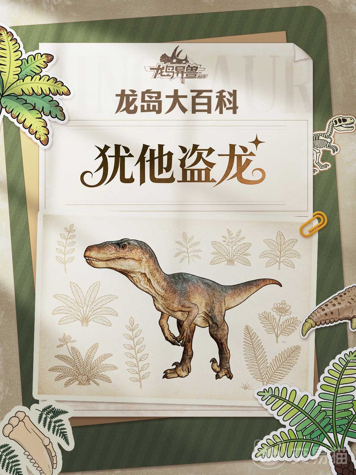 《龙岛异兽起源》是一款以史前生态为背景的开放世界生存冒险游戏,玩家将化身不同种类的远古恐龙,在广袤的龙岛环境中探索、狩猎、成长与对抗。区别于传统生存类作品,本作以真实古生物考据为基础,结合高自由度动作系统,打造沉浸式巨兽视角体验。其中,犹他盗龙作为核心可操控物种之一,凭借其在驰龙科中罕见的庞大体型与高度特化的战斗机制,成为游戏中极具辨识度与战术价值的顶级掠食者。