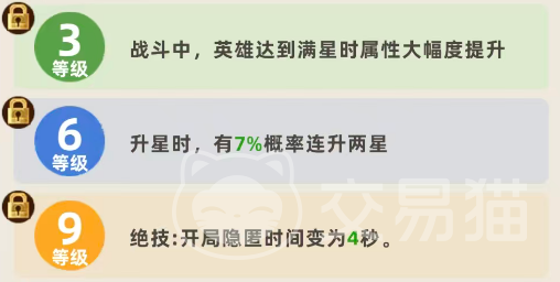 该机制对阵容协同提出明确要求:必须配置足够数量的暴击型队友(如韩信、赵云、兰陵王、赵飞燕、妲己等红卡英雄),以高频次触发虞姬的被动响应。等级成长进一步放大这一优势——6级时升星概率显著提升,便于快速达成二星质变;9级解锁“隐匿”效果,持续4秒,提供关键的开局生存窗口与战术缓冲期;12级时天赋全面强化,初始暴击联动伤害升至260%,满星状态则跃升至520%,在当前所有刺客角色中属顶尖瞬发爆发水平。