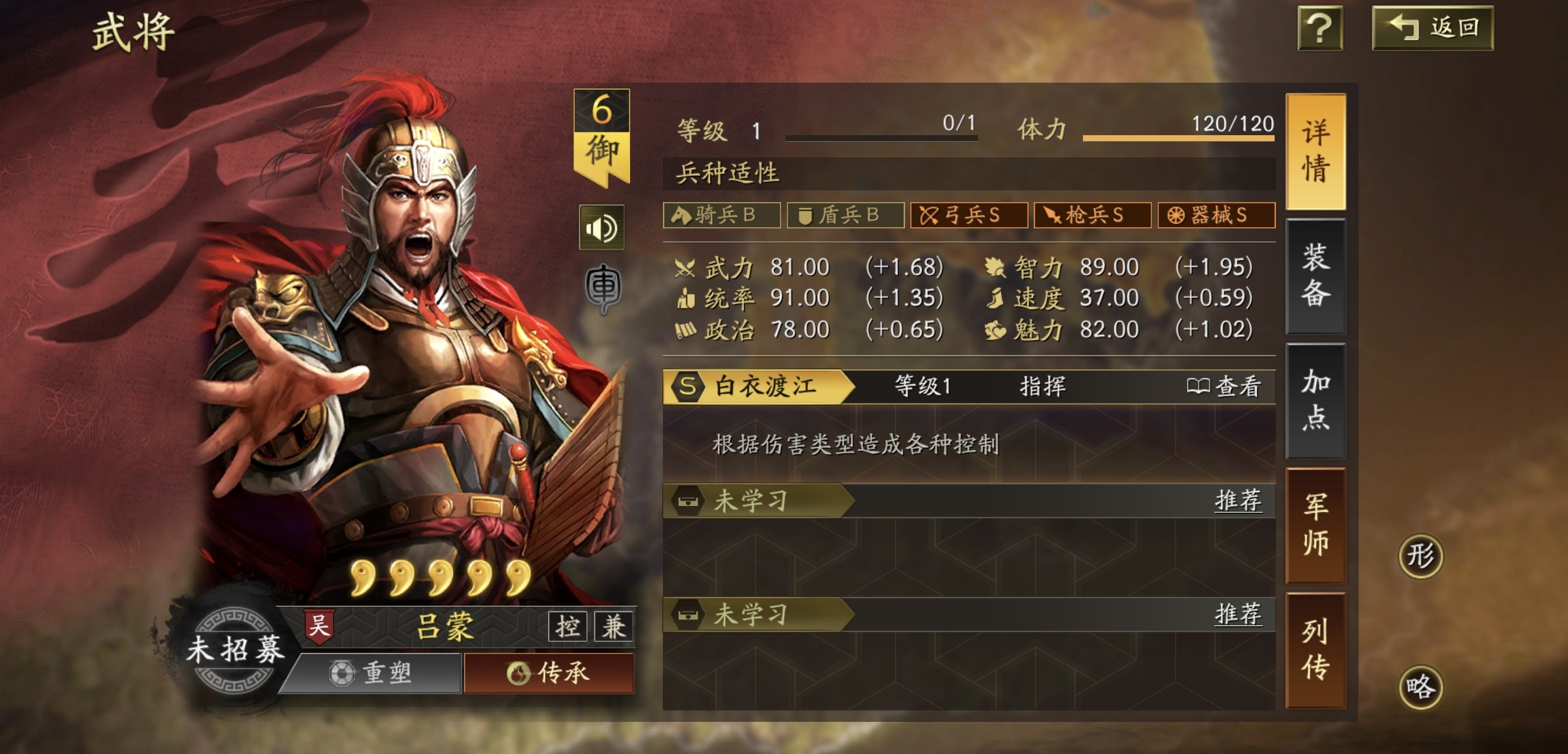 当前环境中公认强度最高、泛用性最广的陆逊阵容为“都督弓”体系:陆逊担任主将,周瑜、吕蒙为副将。三人均为吴国阵营,激活10%全属性加成与额外10%智力加成,属性成长优势显著。其中,周瑜需堆叠速度属性,携带风助火势,确保首回合点火,为后续连锁灼烧创造条件;吕蒙则侧重统率属性,配置草船借箭与暂避其峰,承担前排承伤、解控与减伤职能,保障陆逊输出环境。