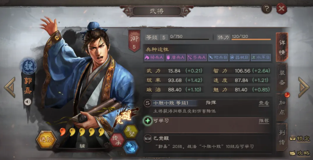 许攸在此体系中担任关键辅助角色,推荐战法【解烦卫】与【临危救主】,兵书选用【惜兵爱民】【守势】【铁甲】,进一步增强全队生存韧性。整体来看,该阵容通过SP马超破防、SP皇甫嵩补控与治疗、许攸提供容错与反制,形成层次分明、功能互补的闭环体系。