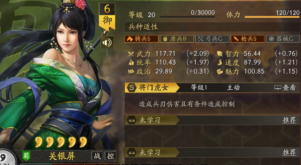 关于关银屏的战法搭配,推荐优先选择提升发动率或增加控制概率的主动战法,例如“盛气凌敌”“横扫千军”,亦可搭配“速乘其利”类增益战法强化先手权。速度属性尤为关键,建议通过加点与兵书调整确保其在首回合率先出手,从而建立开局压制节奏。