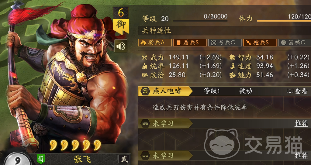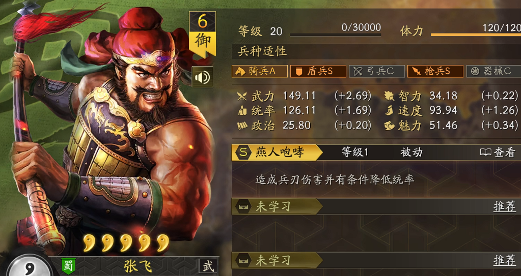 张飞的定位更偏向战术型输出者。其普攻自带“降低目标统率”效果,每回合最多可触发多次,随战法与兵书强化后,能显著削弱敌方前排坦度及后排输出稳定性。因此,战法选择应侧重于提升普攻频率与减益覆盖率,如“落凤”“强攻”等普攻联动类战法更为契合。