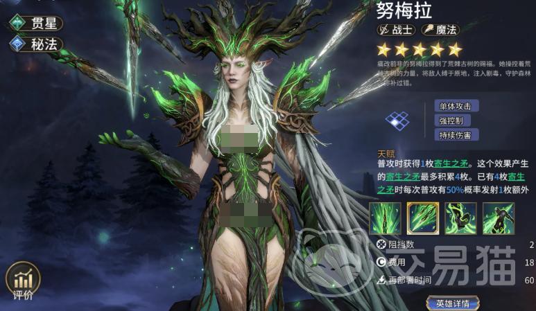 努梅拉:终结爆发担当。寄生之矛依据目标当前中毒层数结算爆炸伤害,层数越高,单次爆发越强;该伤害还可受娜斯佳的“中毒加深”效果二次增幅。其寄生根技能提供持续真伤,大招附带主动眩晕,可有效打断泰坦废墟第一阶段Boss的蓄力读条,保障团队生存与输出窗口。