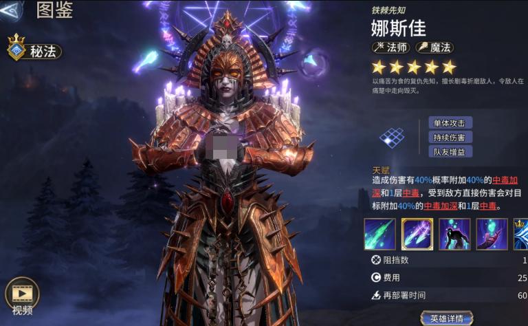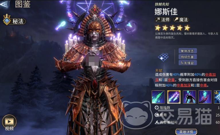 中毒流派依赖三位关键英雄形成闭环:娜斯佳、弗恩与努梅拉。其中,娜斯佳作为秘法会领袖,提供中毒加深、魔抗削减及自身中毒免疫;弗恩承担高频挂毒与护盾特化打击任务,并具备驱散能力;努梅拉则负责引爆累积的中毒层数,触发高额真伤爆炸。三者协同下,队伍可稳定应对遗迹深渊1层、首领之书副本及泰坦废墟等高难度内容。