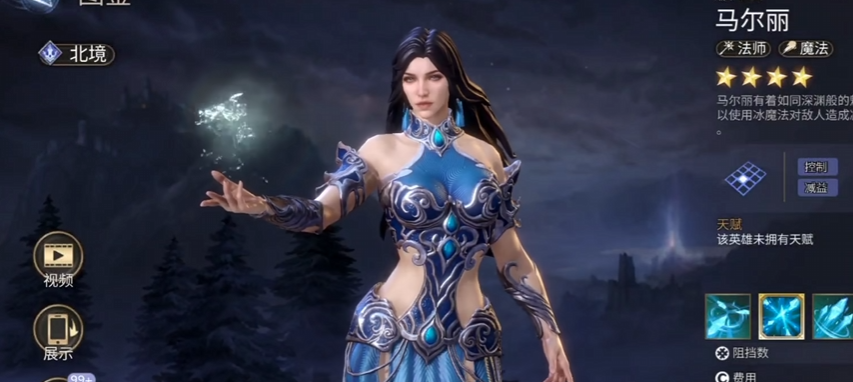 作为高泛用性的四星法师,马尔丽同时具备范围输出、群体控制与团队增益能力。普攻附带35%概率触发分裂冰刺,可随机打击3名敌人并施加减速效果,降低目标75%移动速度;每次攻击还恢复固定怒气值,保障技能循环流畅。被动“冰锥术”进一步延长减速持续时间,并使受减速影响的敌人额外承受物理易伤与魔法易伤效果,使其在面对不同属性阵容时均能有效介入战局。