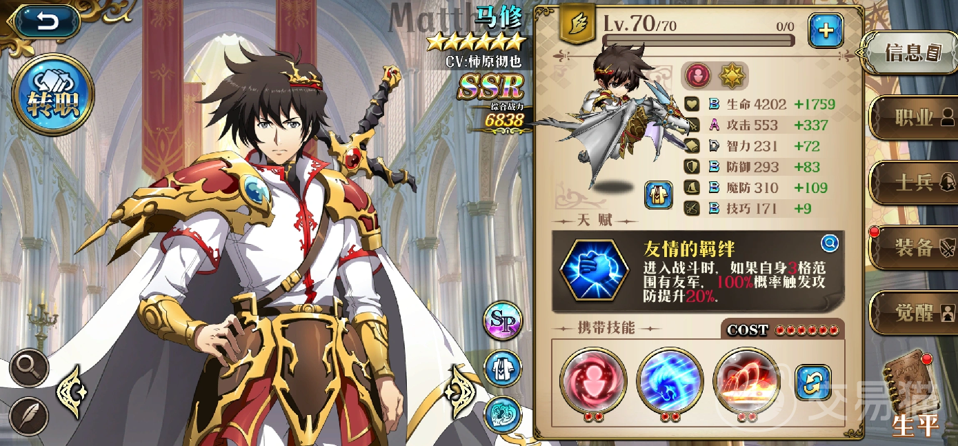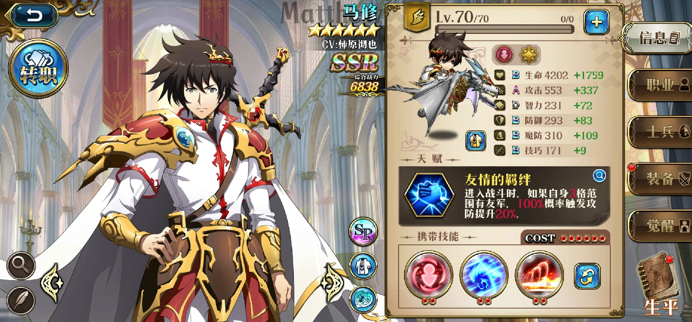 作为剧情核心主角,马修具备独特的成长路径优势。初始推荐选择飞兵职业分支——该形态拥有全游戏顶尖的机动性与先手压制能力,可快速贴近敌方弓手单位,规避其远程输出优势;同时继承战士阶技能“气刃”,实现中距离稳定打击,兼顾安全性与战术灵活性。其专属天赋“风语”进一步强化移动后行动效率。更重要的是,马修碎片无需依赖卡池抽取,通过常规玩法“时空裂缝”即可稳定获取,养成成本极低。中后期可转职为英雄职业,解锁超绝技“光之传承”,为全队提供大范围伤害增益;前期以飞兵形态承担主力输出与战术调度职能,过渡平滑,成型速度快。
