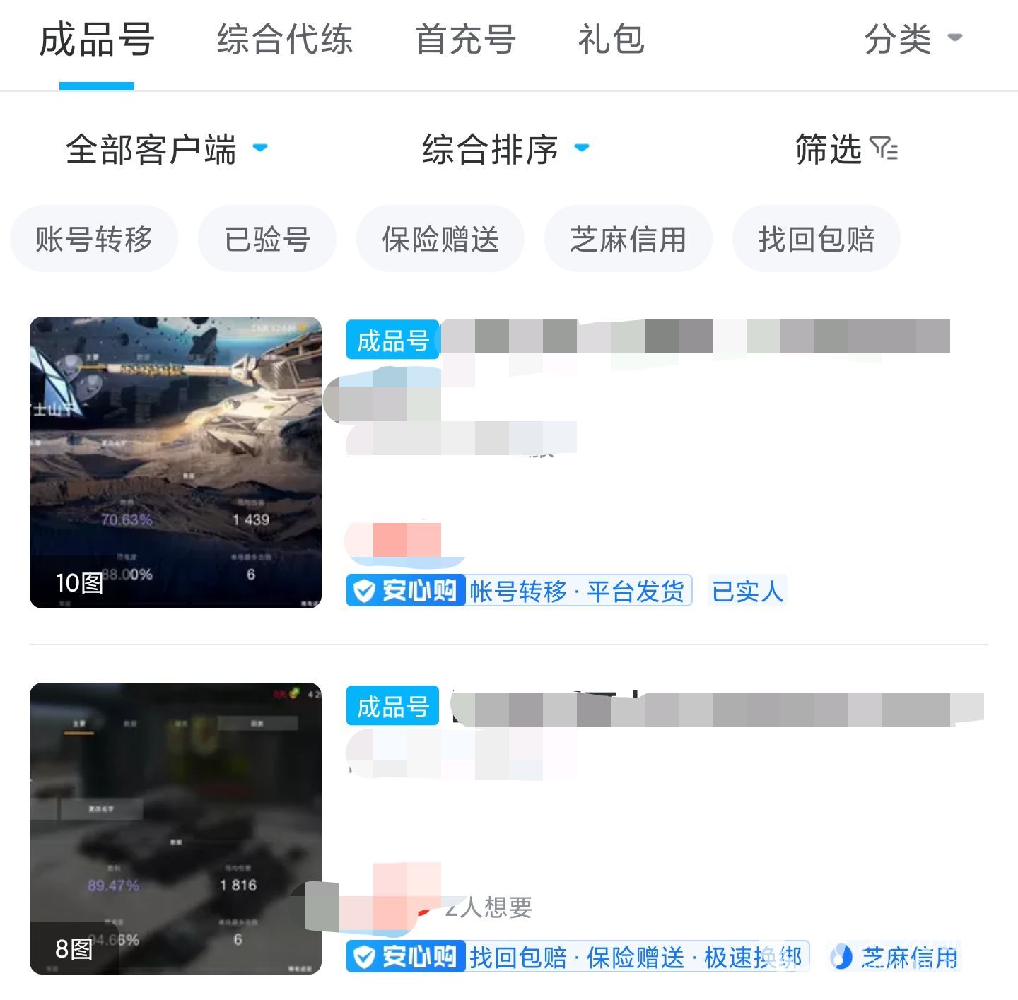 针对这款游戏交易猫平台内准备了一个拥有着不同种类账号类型的专区,玩家们可以选择利用金币号,首充号和折扣号来开局,也可以选择成品号直接体验游戏内已经解锁的大量主流坦克以及其他载具,可以体验到的玩法模式也是比较多的,但推荐大家对这款游戏的玩法有一定的了解,再去购买成品号。