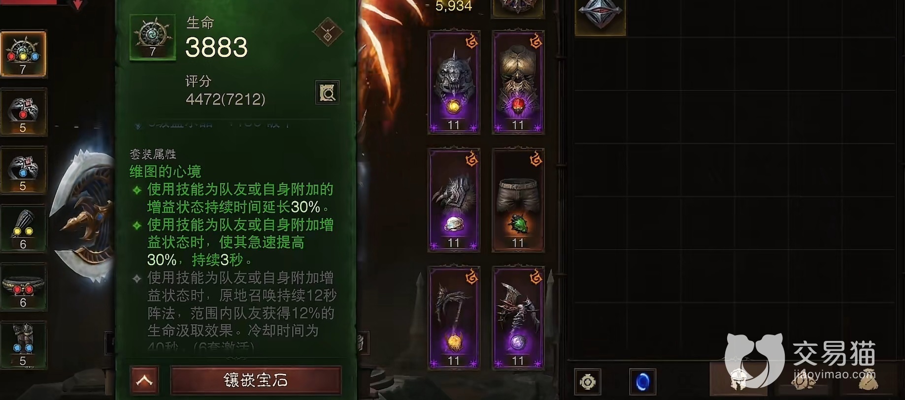 在套装方面维图的心境是首选,能够提高增益状态覆盖率,最重要是无论是急奔、狂暴者之怒还是冲撞,都可以触发急速增幅。急速高了野蛮人平a起来就更带劲了。接下来就是最重要的传奇宝石,一定要都选择五星这也是最氪金的地方。在具体的实战中也是简单粗暴,首先先手用野蛮冲撞接近敌人,然后就开启狂暴者之怒一路猛砍。当拉开距离以后,再次释放野蛮冲撞继续接上平a。