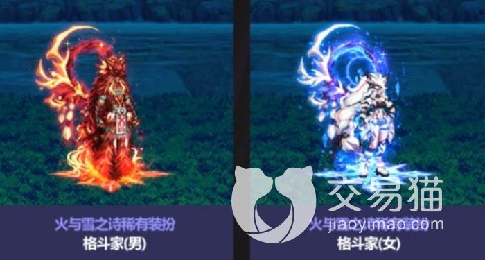 国庆节分别给男女格斗和男女神枪手上新了新套装,两个格斗的套装名都叫火与雪之诗,而且都是稀有装扮,男的就是和名字一样,一套火红的衣服,地上还有火焰燃烧的雪花状物,背后有着一个火红的大光圈。女的是雪花冰蓝色,和男的一样,背后蓝白的大光圈,脚下蓝色的雪花。