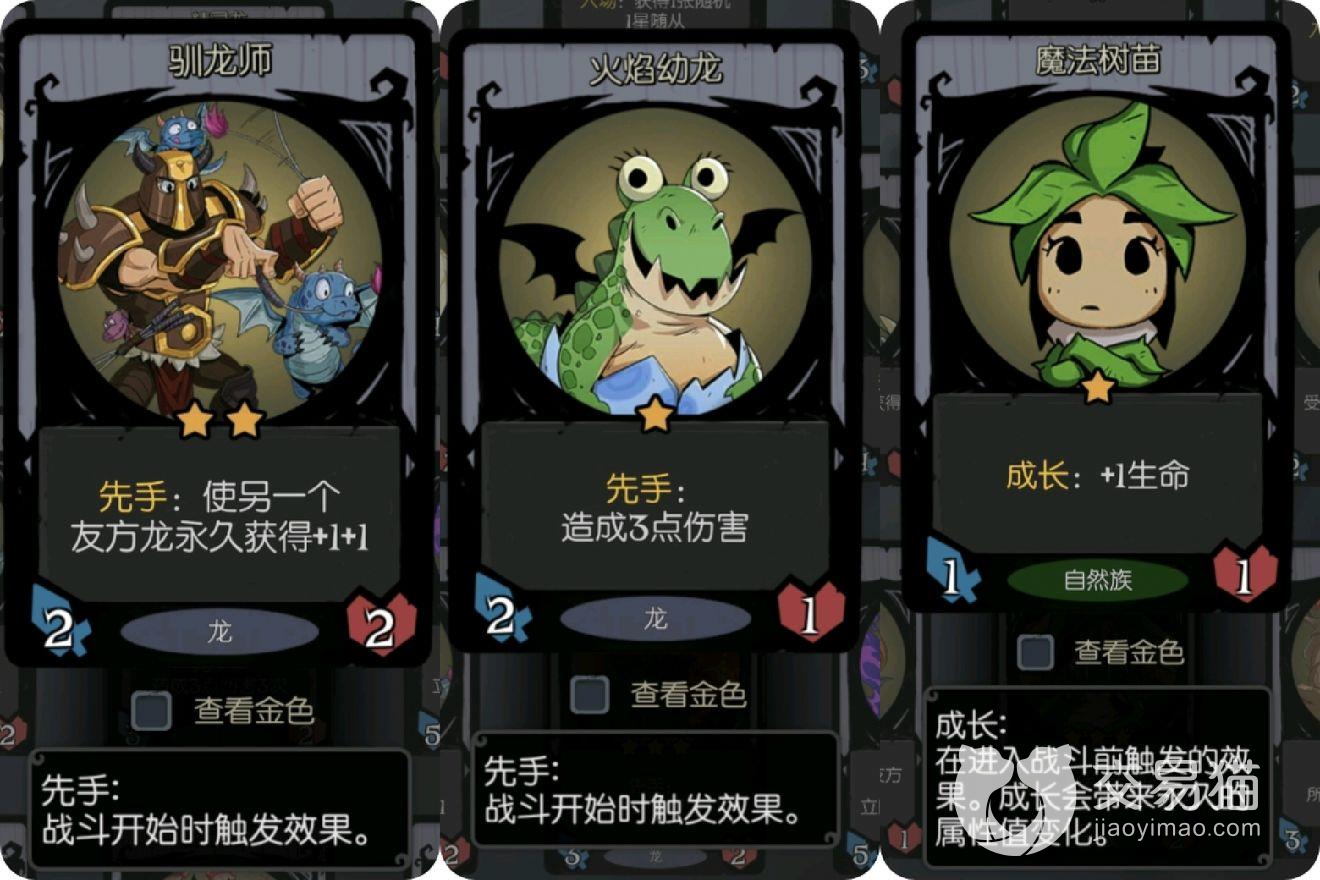 1、这一套阵容前期的主要玩法就是苟,难度1-难度8的模式,那么在开局时刷一个龙宝宝就够了。如果是难度9-难度10模式,榜额推荐先刷个小树苗,使用成长流慢慢过渡到到4级。在到达这个阶段前,无需太多个花费去升级,主要是先把卡组的实力提升一下,然后使用驯龙师慢慢提升龙宝宝。