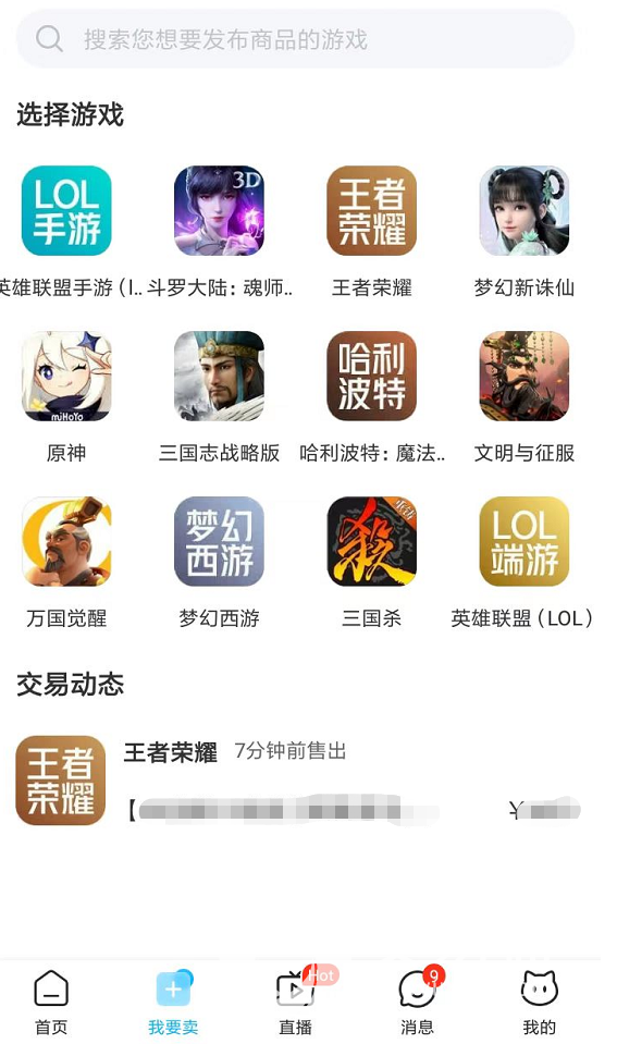 1、当各位有了卖家资格之后,想要完成一次账号交易的话,需要在交易猫app的主界面当中选择进入到“我要卖”专区,该专区会为玩家们提供丰富的热门游戏,同时各位也可以手动进行搜索。选择到合适的游戏专区之后,各位就会开启账号交易的信息填写阶段。