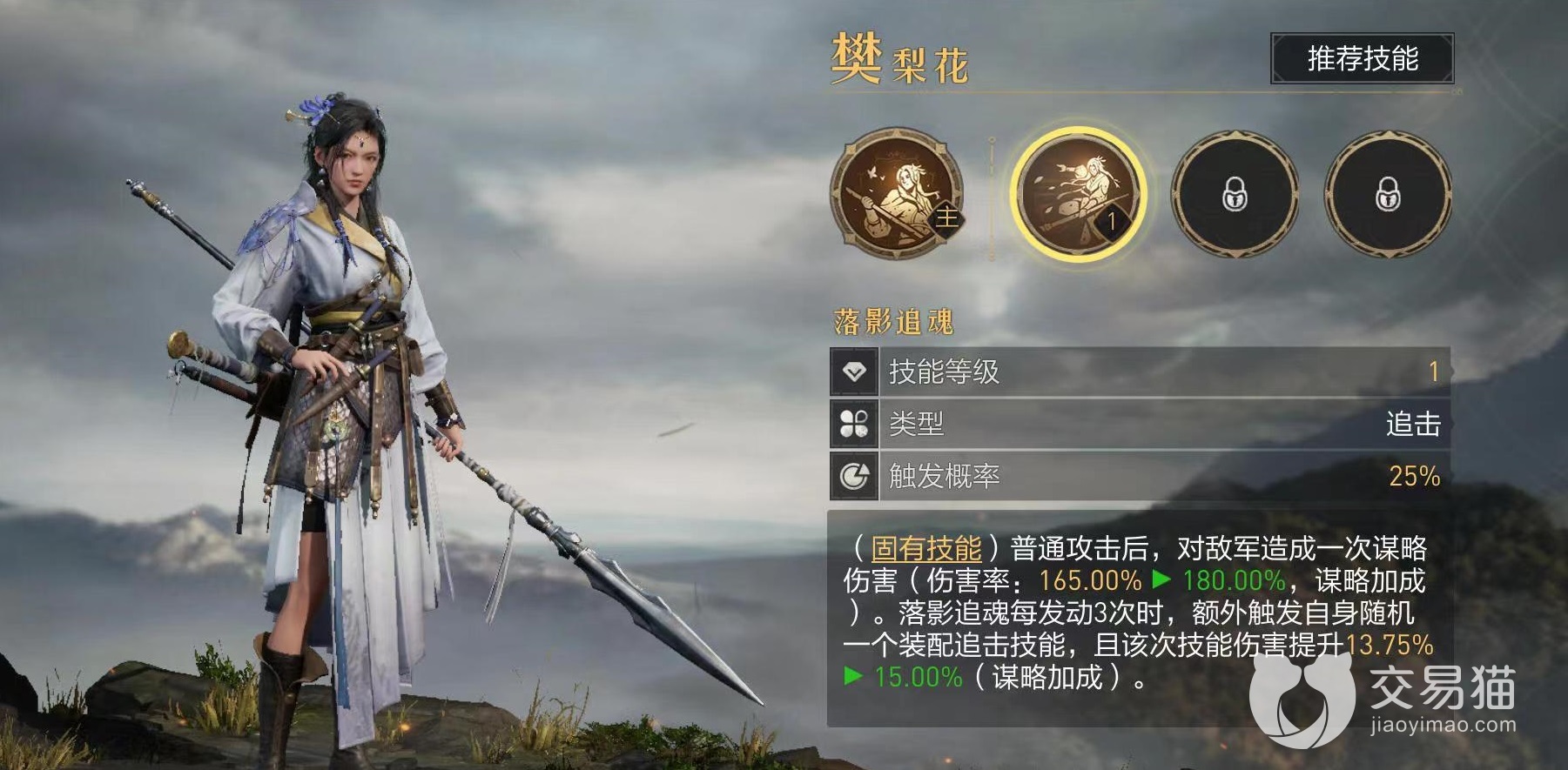 樊梨花之所以在S3版本备受关注,固有技能肯定是最重要的原因之一,效果是在进行普通攻击后可以再造成一次谋略伤害,并且此技能一旦发动三次后,可以额外触发一个追击技能。当樊梨花达到三红后触发追击只需要两次,非常恐怖。再加上樊梨花本身的技能伤害就非常可观,现在增加了追击的伤害,可以说是锦上添花。