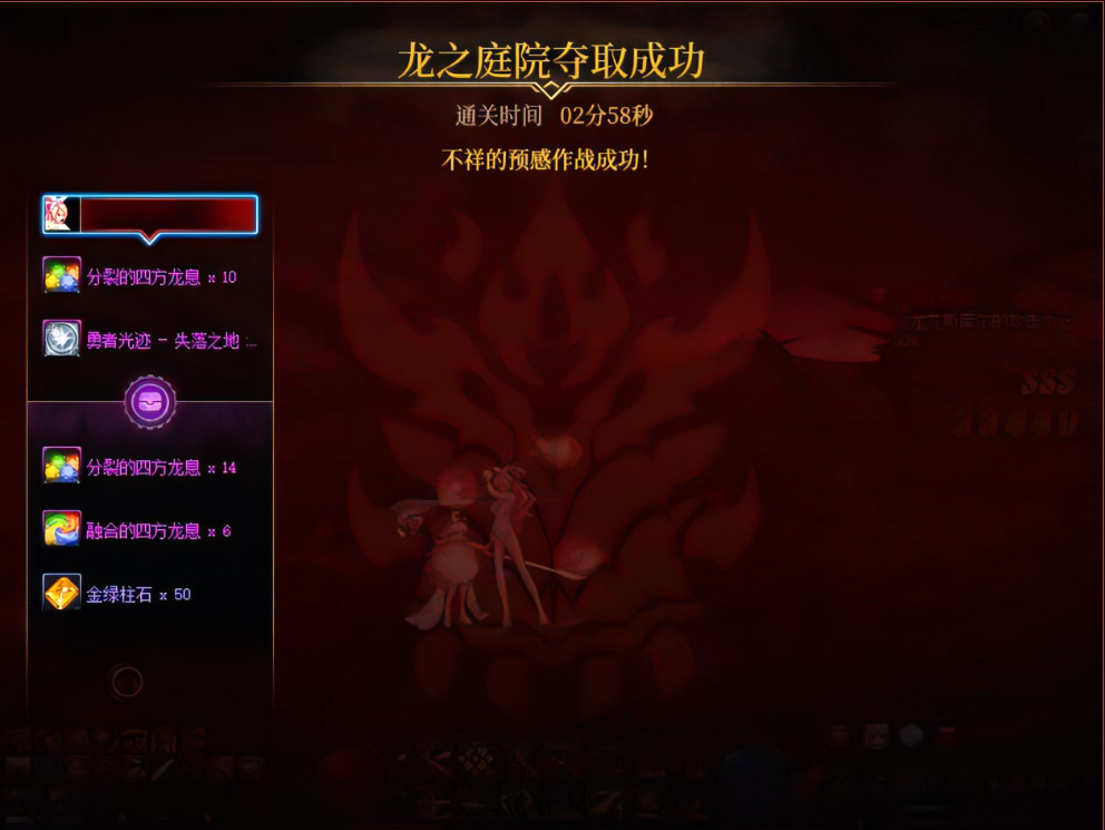 本次副本的主要掉落为分裂的四方龙息,因为无法交易,所以还算不错。可以换融合装备,该装备有很好的属性。