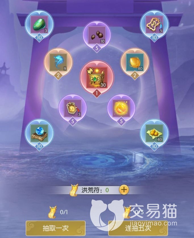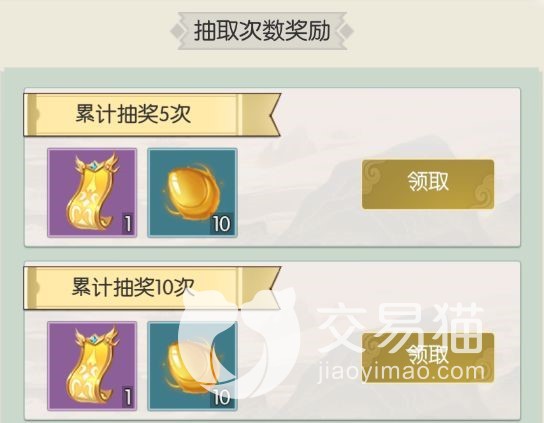 大家只要在这里进行抽取就可以在其中的宝物,这些奖品是有级别区分的,一共分成四个级别,其中可以选择一到四个物件。在每次需要进行抽取的时候就需要使用一个符,每次要消耗的数量都是不变的。