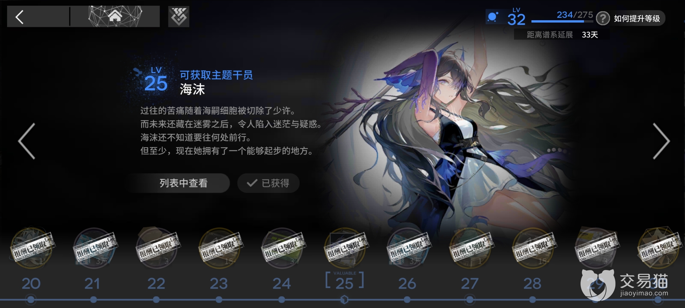 首先,海沫作为水月与深蓝之树的主题干员不需要花费博士们的合成玉去抽取,要获得她和她的潜能,只需要博士们用生机细胞升级生态谱系,达到一定的等级就可以了。