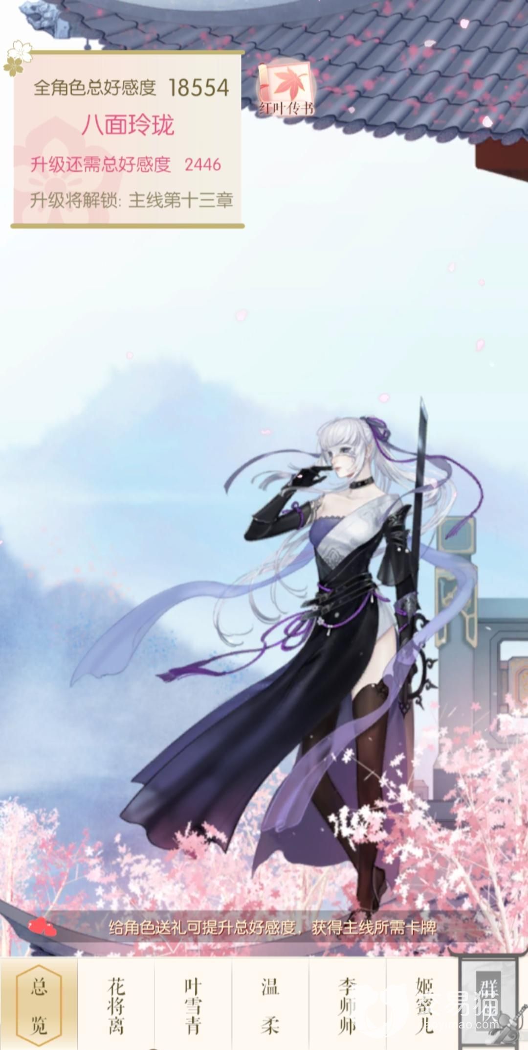 女角色也是同样的,部分奇物只能够通过对应的剧情任务和限时活动获取,对应礼物如下:花将离喜欢火枪和龙渊,叶雪青喜欢萤火虫和桃花雪,温柔喜欢三合酒,李诗诗以及姬蜜儿喜欢玉红叶,剩下的就是全员都可以赠送养颜阿胶。