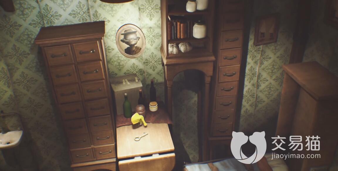 控制小人潜入到瞎子怪的房间当中,最右方各位可以看到一个触发的机关,跳起来让机关运行会直接出现一张床铺,大家通过床铺可以移动到更上方的柜台,在这里就可以发现一个重要的钥匙。捡起钥匙之后直接扔在地面上,在控制角色向下移动,随后朝瞎子怪房间的左方移动,就可以看到插入钥匙的位置。