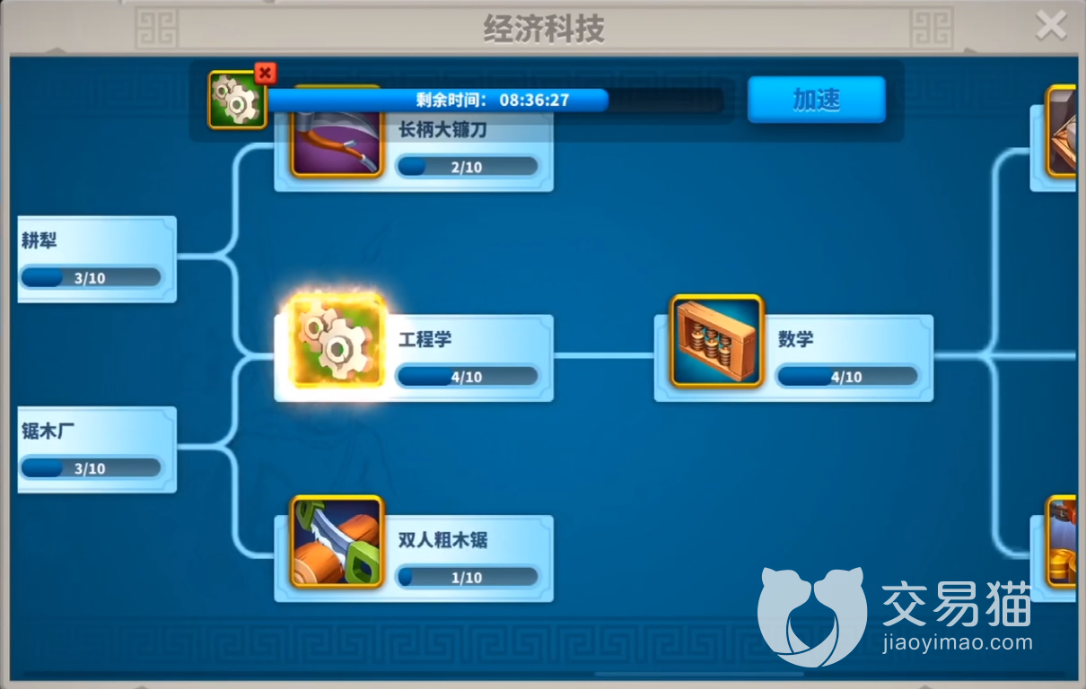 在前期不需要花费太多的时间来提升T1-T3的科技,这些科技是能够通过拜访可以直接学会,自己学的话需要浪费大量的时间,前期主要还是做建筑上,科技加速可以暂缓,然后就是找机会加入到人多活跃的联盟中去,这样能够高效率的提升你的科技速度。