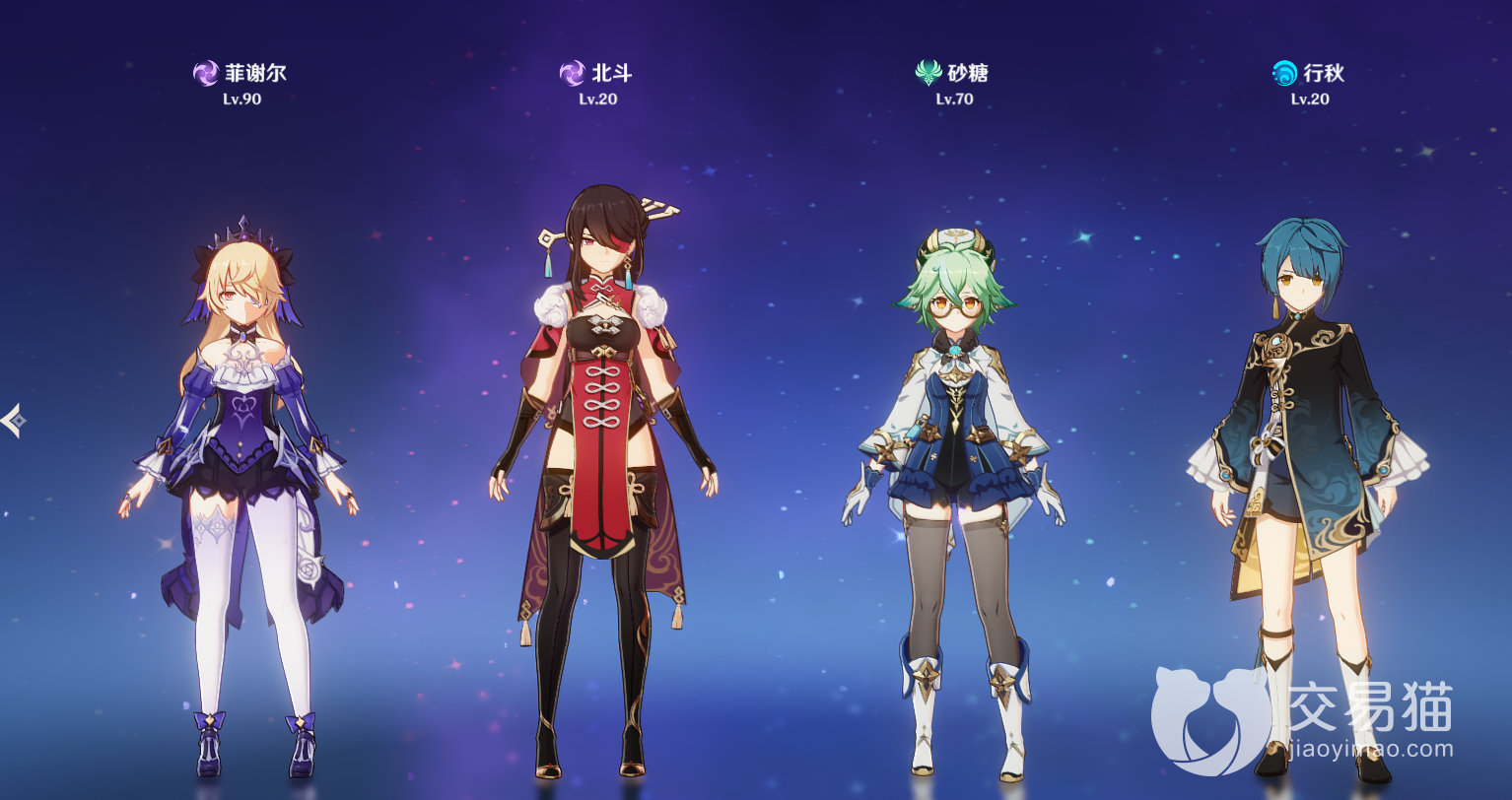 其次是【砂糖】+【菲谢尔】+【北斗】+【行秋】。行秋在后台挂水,然后北斗菲谢尔的元素技能会造成雷系的脱手形元素附着。砂糖作为法系角色,能够时刻造成扩散和染色伤害,持续增加感电反应的伤害。