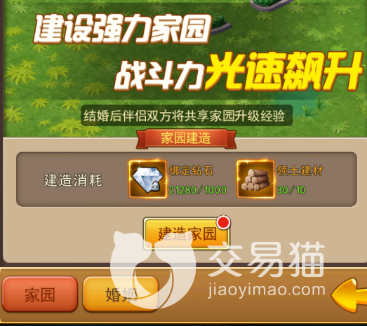 此游有一项功能就是建设家园,但想要建立自己的饿领土,就需要先升级开启,其中的一些建设材料也是要进行收集的,没有材料就不能进行建造,其中有一个比较快捷的方式就是建议各位先结亲。