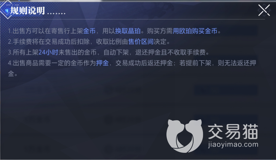3.所有上架24小时未售出的金币,自动下架,退还押金且不收取手续费。