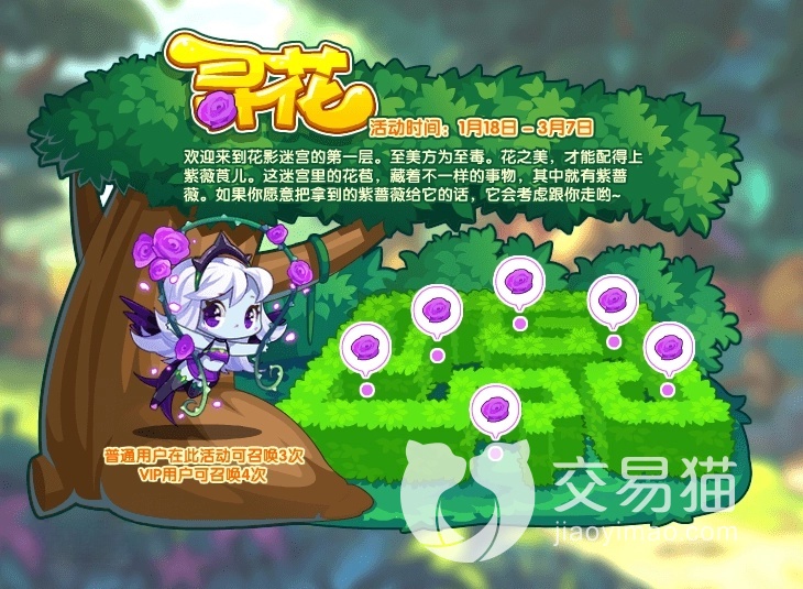 喜欢自然和鲜花的紫薇莨儿是一名心地善良的小宠物,拥有治愈能力的她常常会为受伤的动植物治疗,作为精灵王的前置形态,她并不能从常规的卡池中获得,要想获得她,必须从寻花活动中获得,在完成了活动的任务,集齐一定数量的活动道具,就可以兑换紫薇莨儿。
