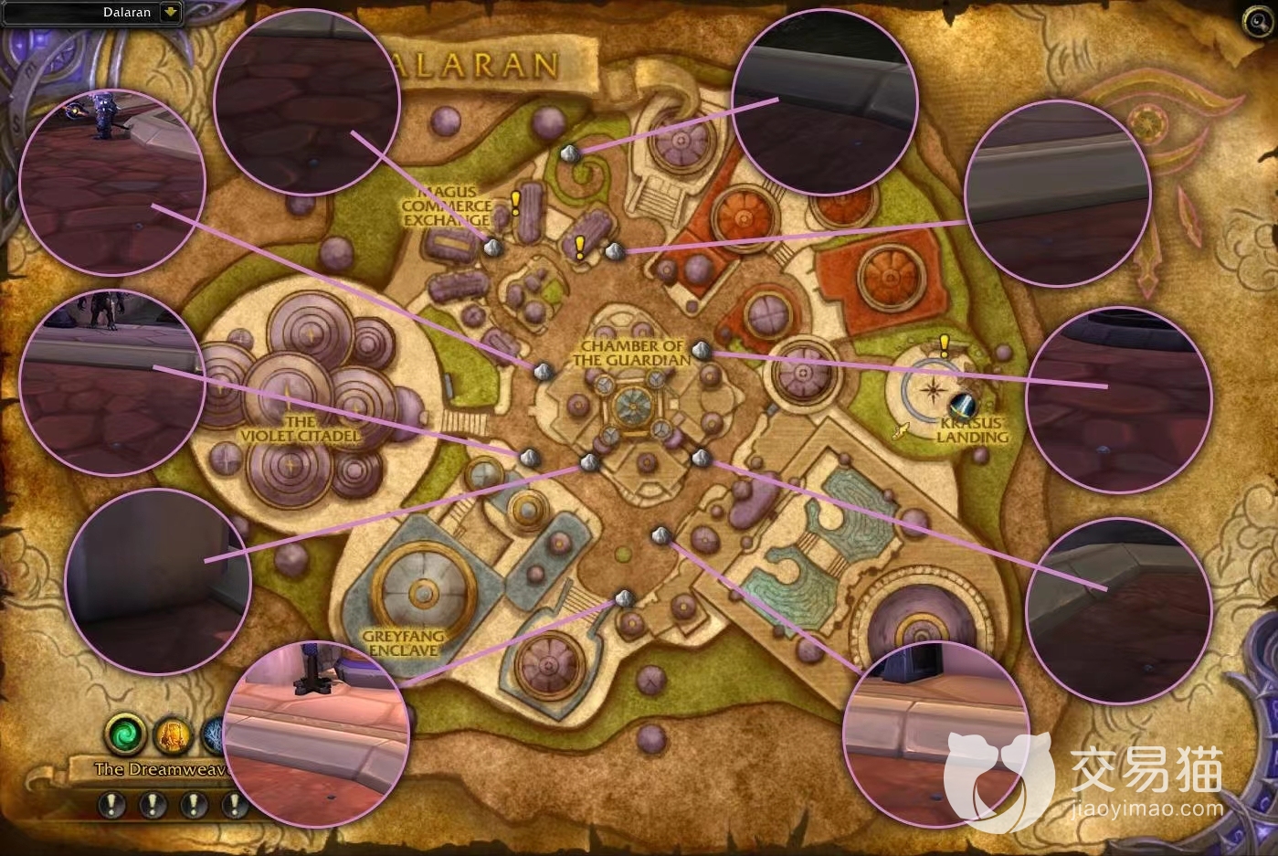 最后还有一个途径是先到达龙骨荒野,然后跑路到水晶之歌森林,在地图中找到紫罗兰看台从这里可以直接传送过去。当然还有一些小技巧是通过火箭靴或是猎人的滑翔飞机等这里就不再介绍了。在达拉然主城中拥有非常多NPC,可以提供一系列功能性服务,也是游戏后期很重要内容,无论是兑换装备还是刷声望都需要忙碌好一阵。