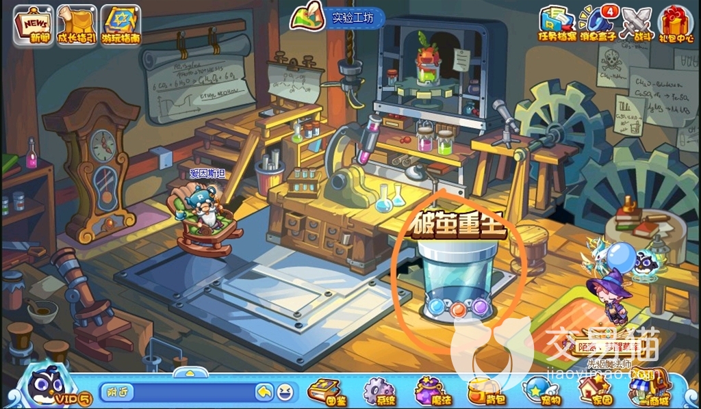 点击了被圈起来的门之后,小洛克们就会进入到实验工坊,这个工坊里有NPC爱因斯坦,还有一个巨大的罐子样式的装置,这就是小洛克们苦苦寻求的破茧重生装置了。