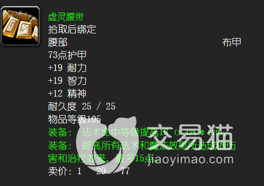 虚灵腰带,这件装备没有主动,却又两个效果,一个是提高法术命中,一个是法术和魔法造成的伤害和治疗量,这两个属性都很契合治疗职业,因此也很强。