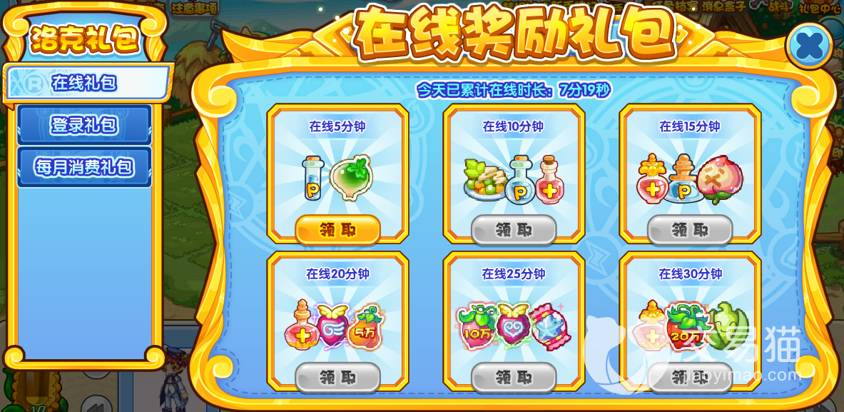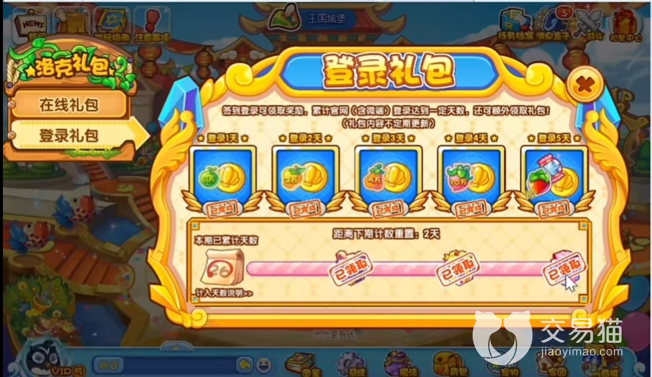 游戏中有的洛克礼包除了在线时间达到要求之后领取的在线礼包,另一个就是登陆礼包了,可以看到每天登陆都可以获得洛克贝和其他道具,累计登陆还可以获得额外奖励,所以登陆是最稳定的来源,不过相对以下的方法来说,还是很少的。