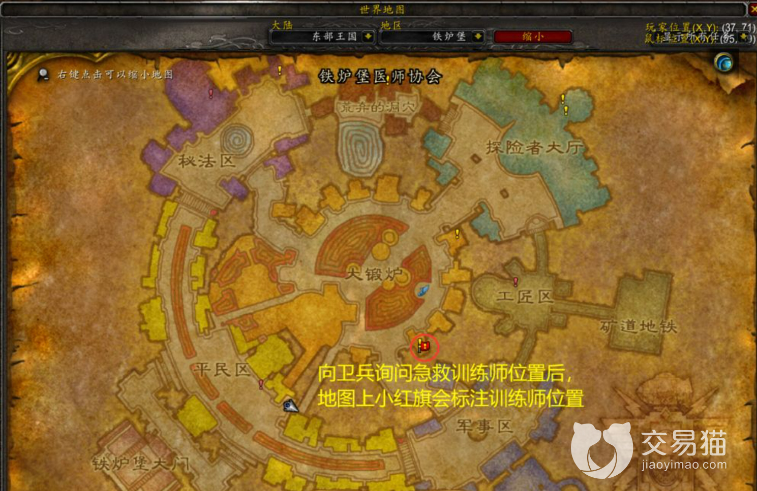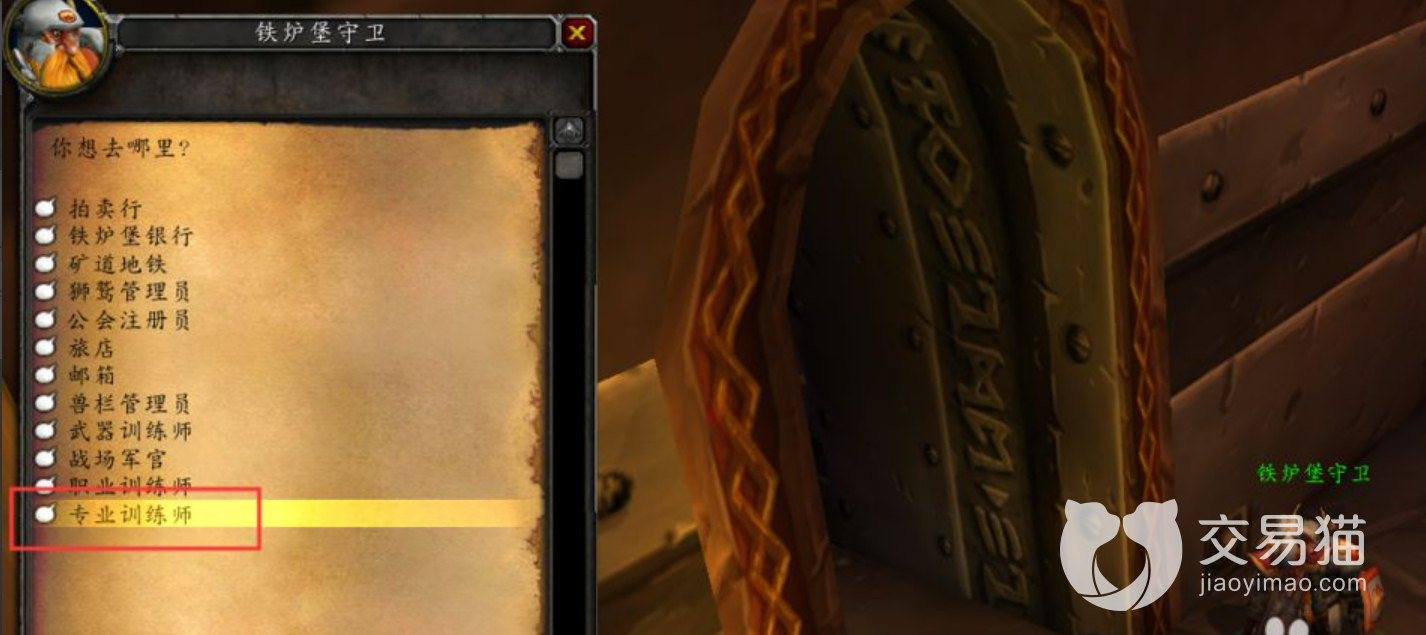 小编的主城是铁炉堡,找到铁炉堡的首位,他会问目的地,这里先选择专业训练师。