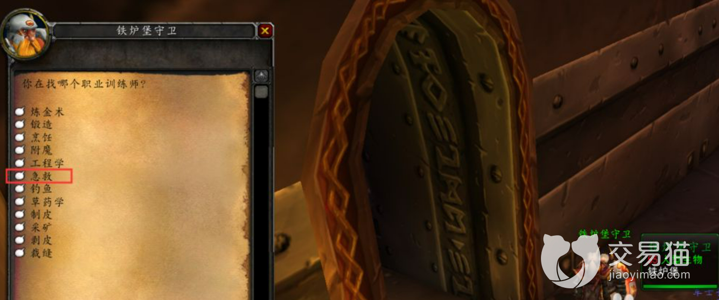 负责急救这个职业的训练师是尼莎·火石,找到她后点击找到发展技能这一块,就可以学习初级急救和中级急救了。