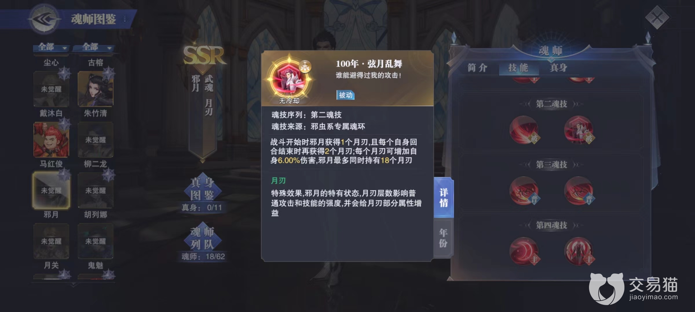 第4个选择邪月,毕竟前面三个都是辅助系魂师,整体队伍输出偏低,而邪月作为敏攻系的热门人选依然有着不错的输出。最大的特点是可以利用第二魂技的月刃来为自身提高伤害,而且擅长进行单体输出这一点和唐昊可以形成很好的互补。现在队伍中的邪月和唐昊在另外三名辅助的加持,完全能和三名输出相持平。最后一名位置可以按照实际情况来选择,可以继续走辅助强化生存能力,也能够选择暴力输出,作为一名自由人位置进行随时更换。